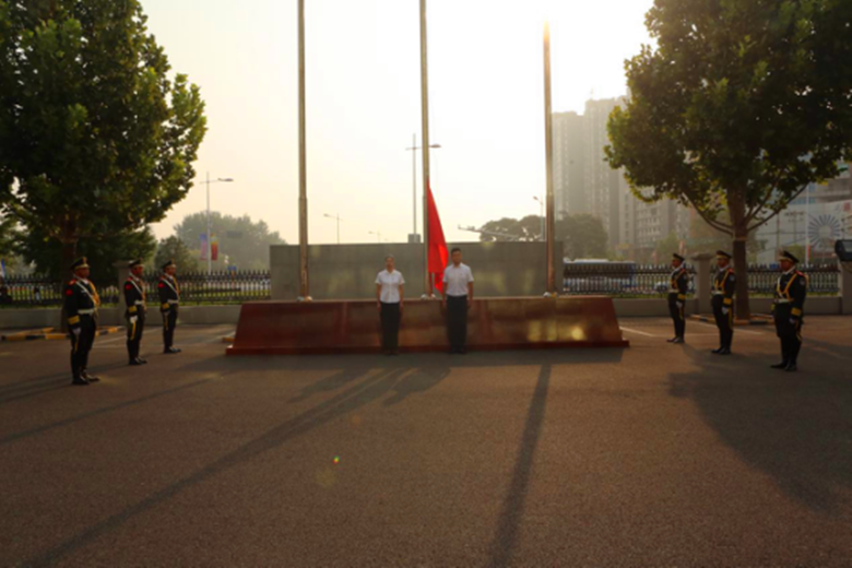 随着激昂雄壮的《义勇军进行曲》响起,仪式正式开始,全场人员庄严肃立,行注目礼,五星红旗冉冉升起,高高飘扬在广场上空;随后,全体干部职工高声共唱《我和我的祖国》,嘹亮的歌声响彻晴空,祝福伟大祖国繁荣昌盛。
